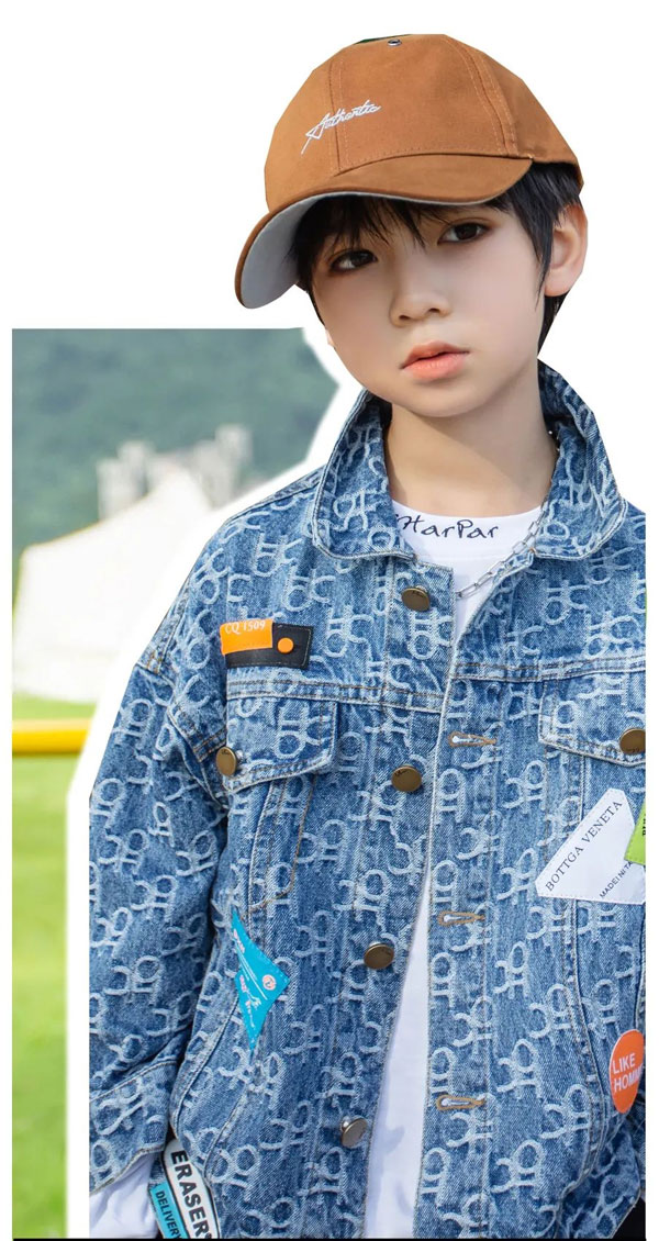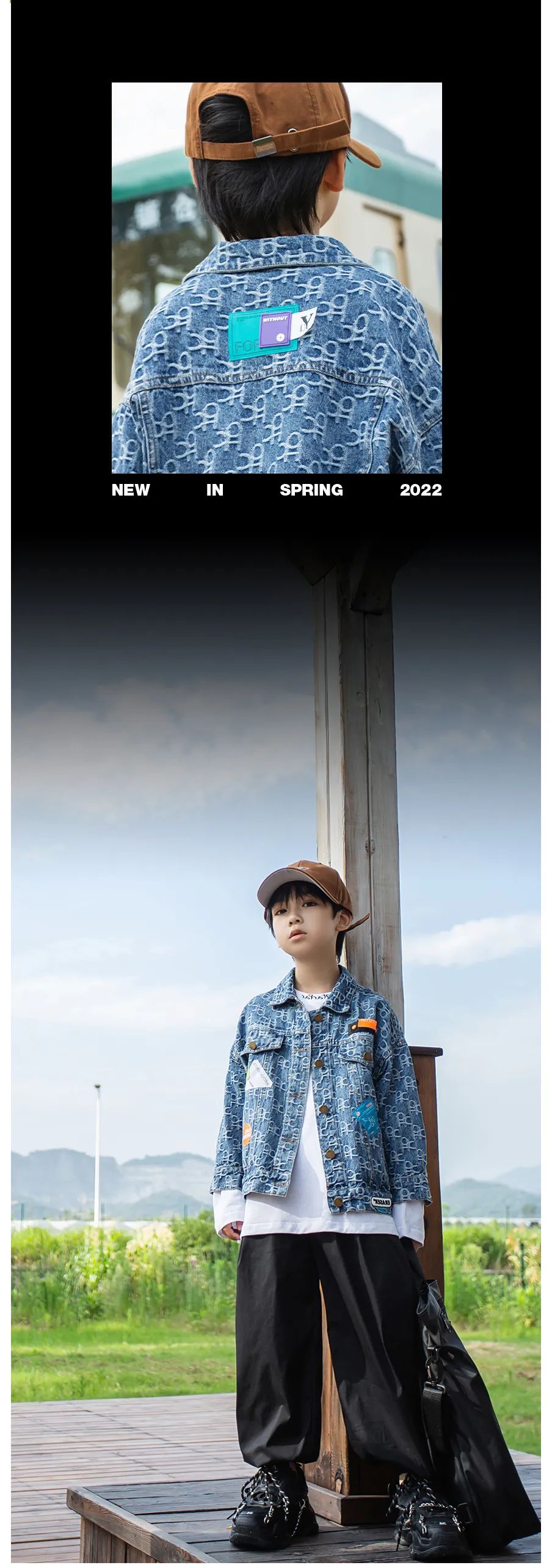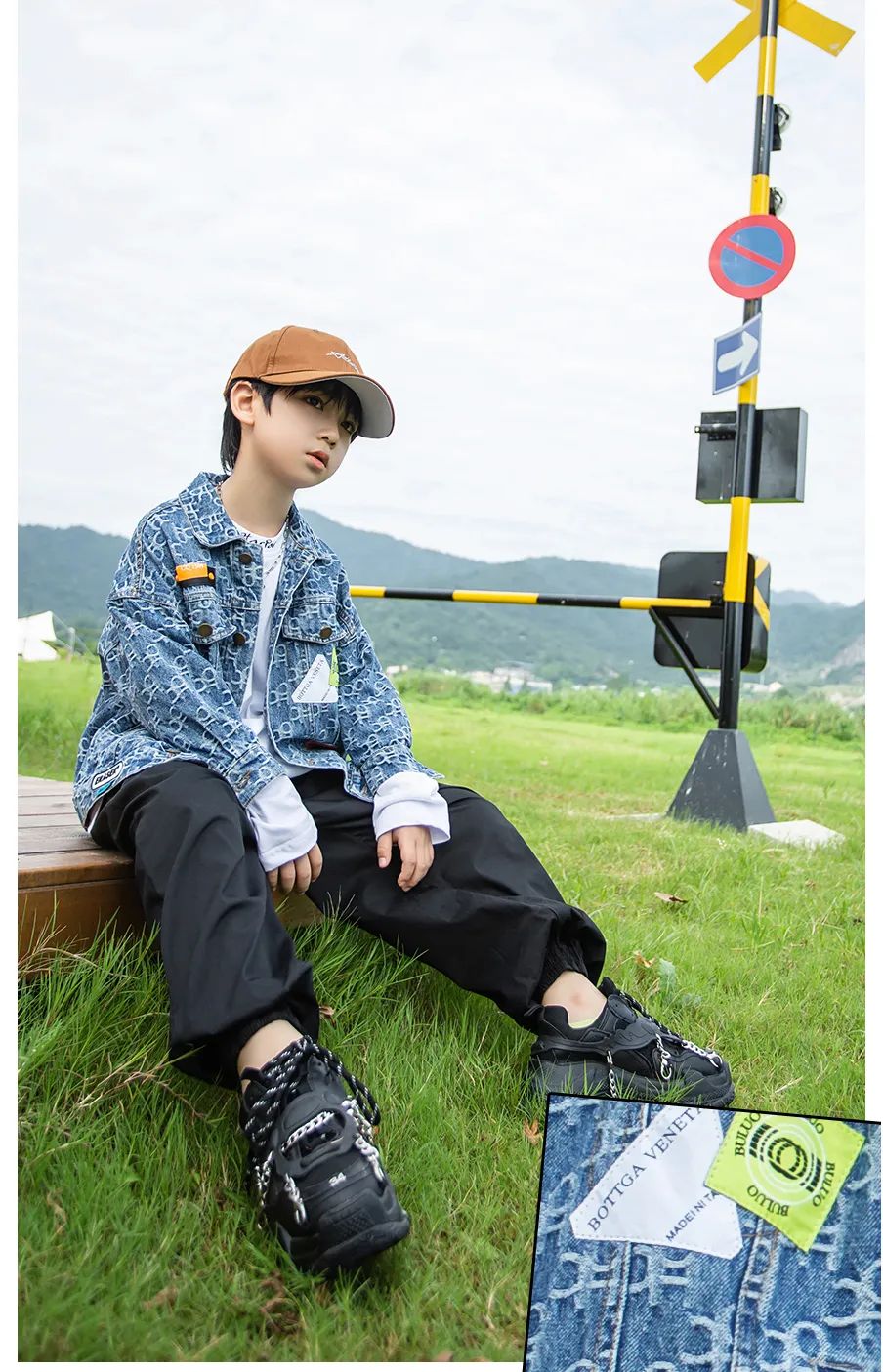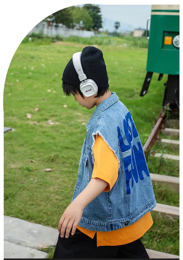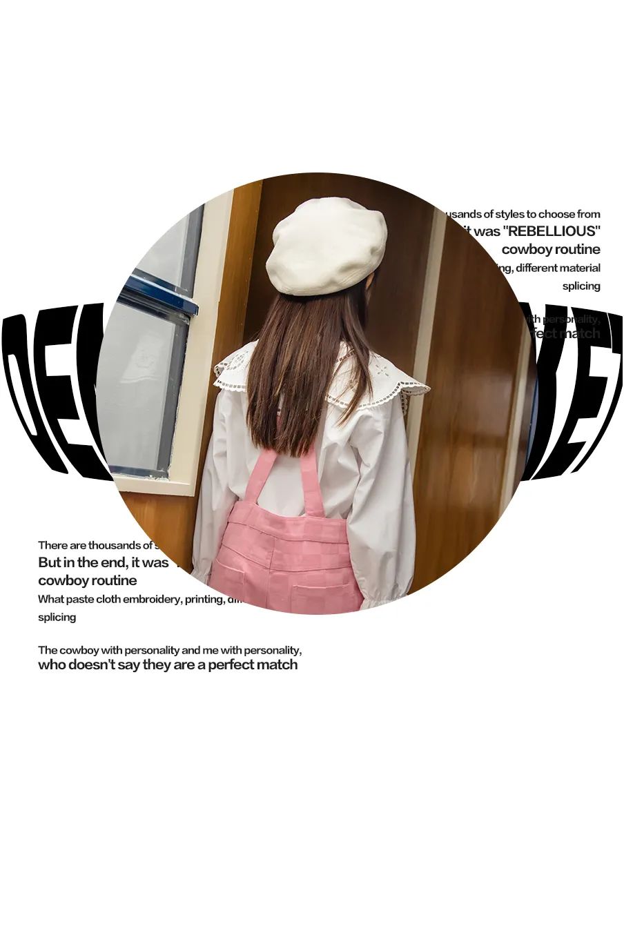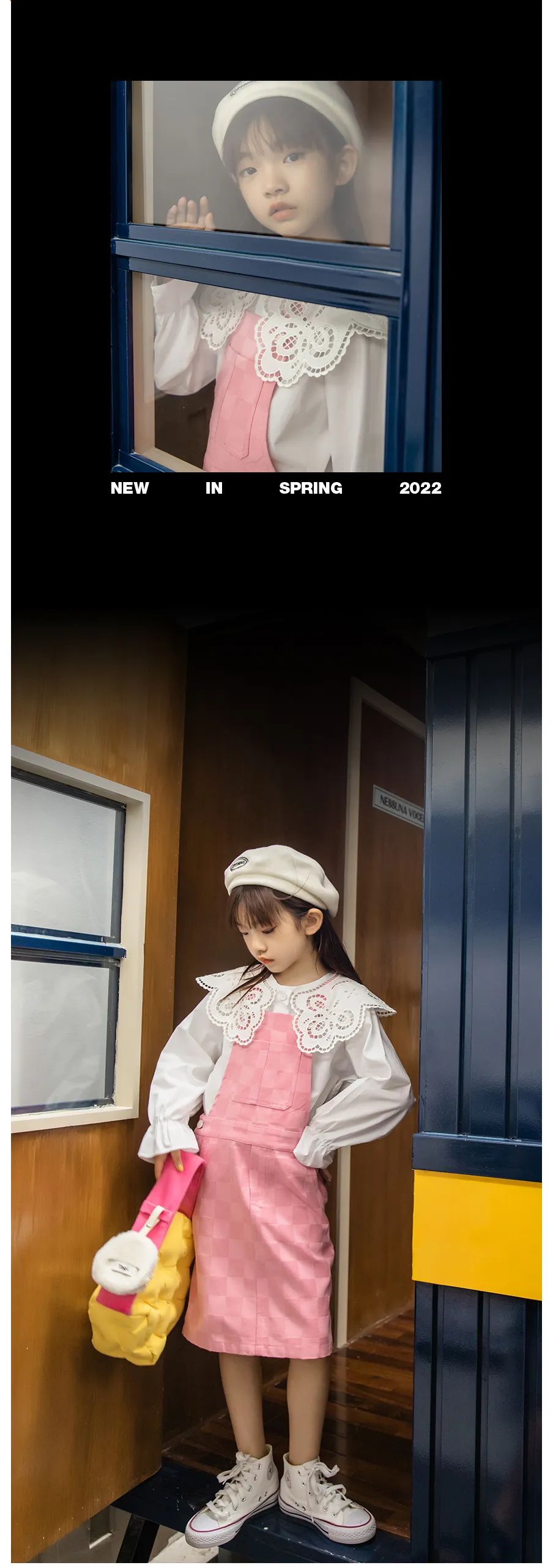 明亮欢快的湖蓝色牛仔拼接白色搂空面料