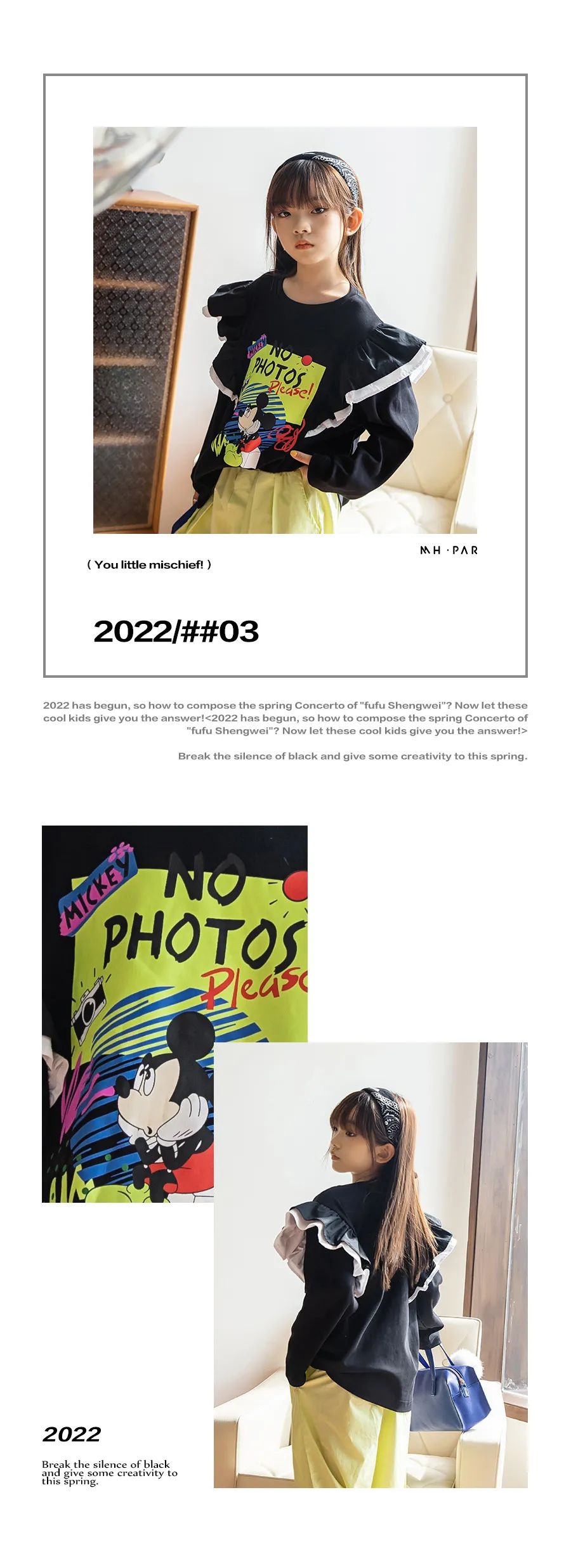 黑色作为基地色,结合趣味且极富色彩张力的印花