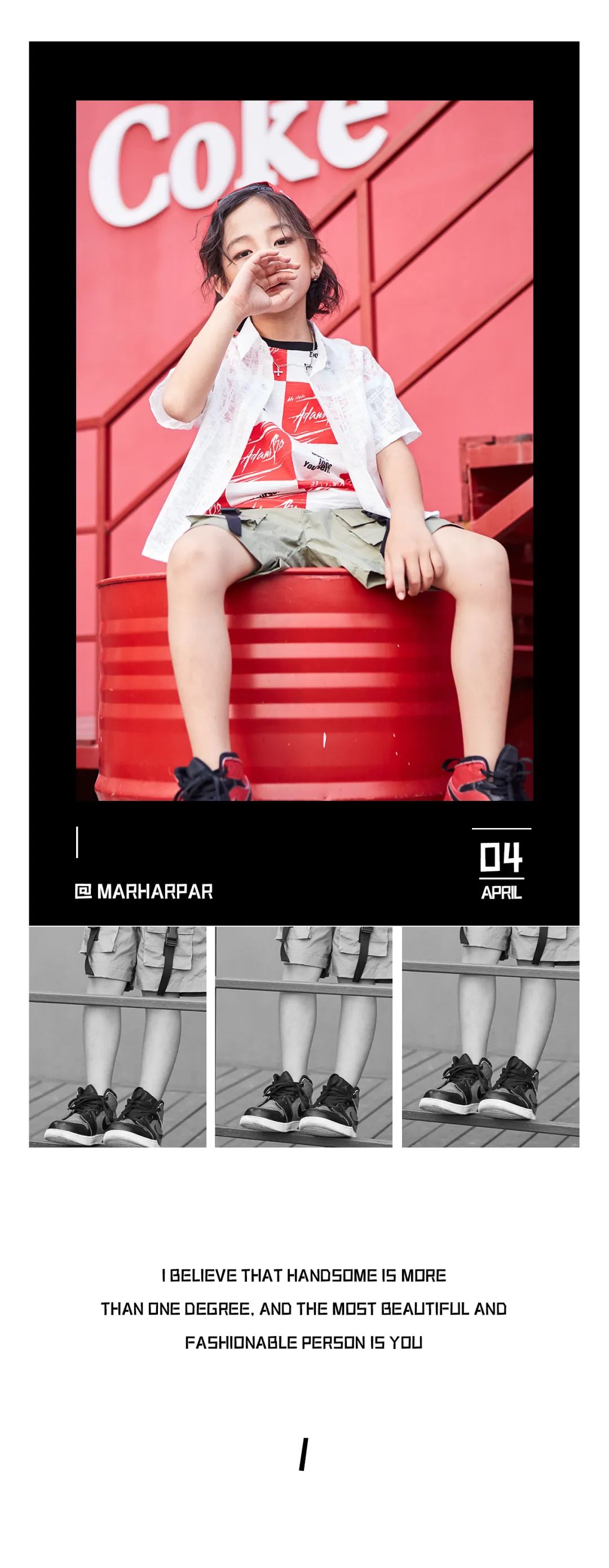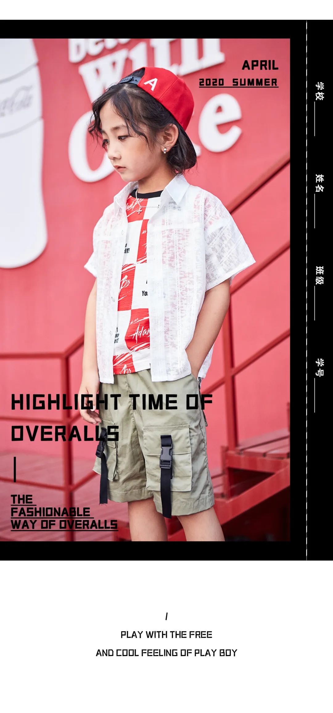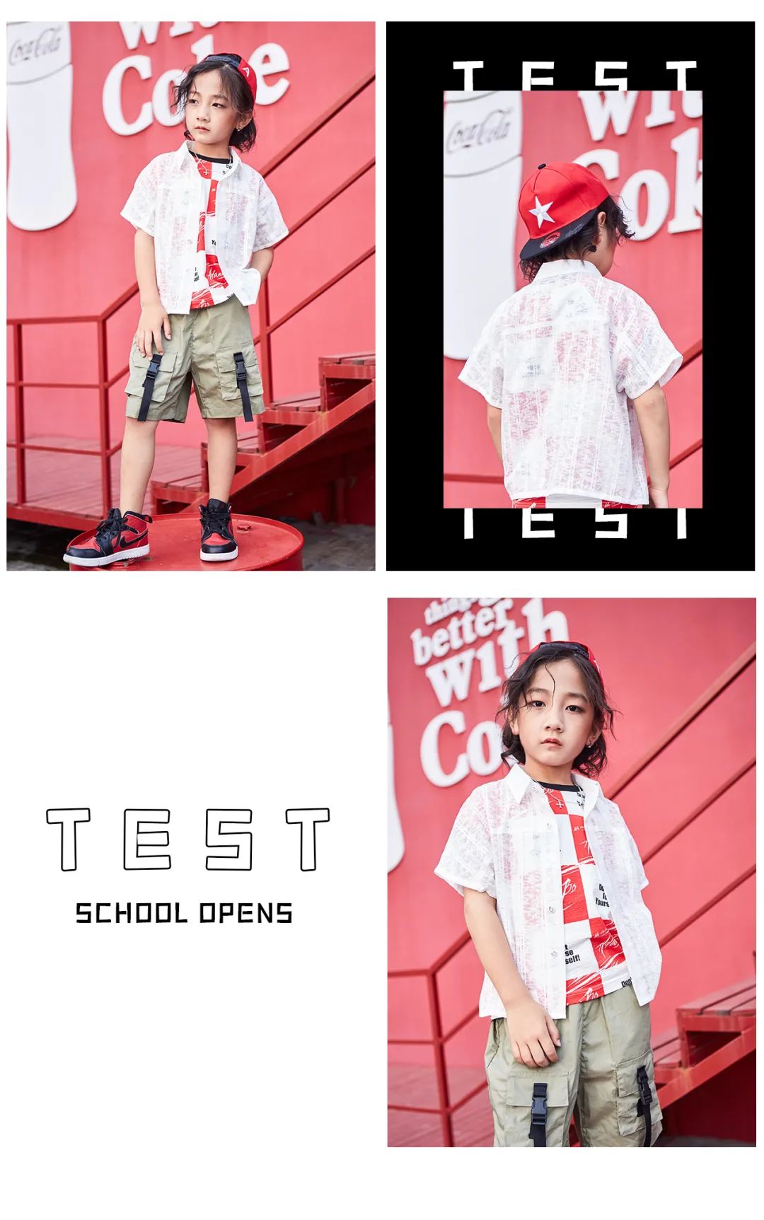 搭配红白棋盘格字母印花,叠穿白色半透明迷彩纹短袖衬衫