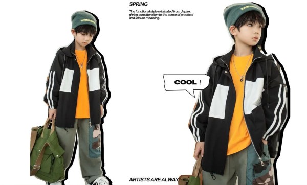 融合牛仔门襟和嵌条运动感中带点不羁