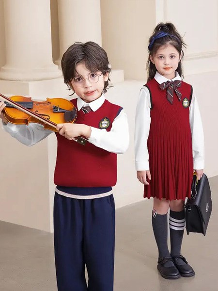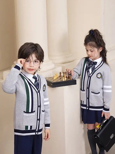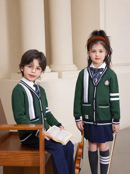 绿色针织开襟,以清新的绿色为基调,充满了生机与活力。其简洁的开襟设计,不仅方便孩子们穿脱,更在视觉上增添了整体的时尚感。内搭白色简洁翻领衬衣,既保持了校服的整洁与统一,又让孩子们在校园里展现出独到的个性与风采。这款搭配,无疑是学院风情的更佳诠释。