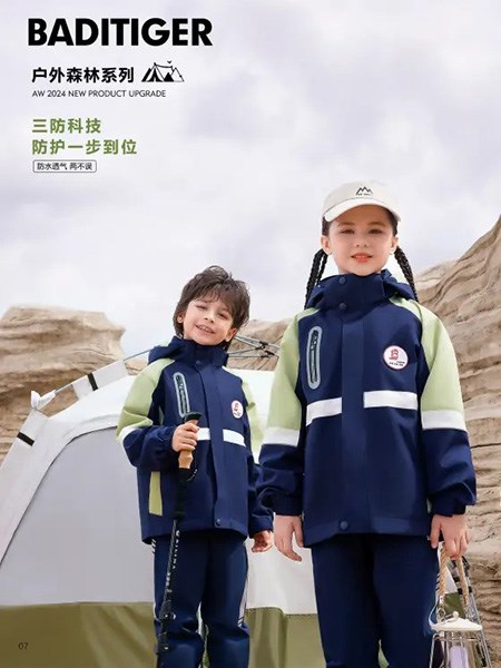粉色和深蓝色拼接组合的户外套装,甜酷有型,专为小玩家们设计。这巴迪小虎BaDi Tiger
