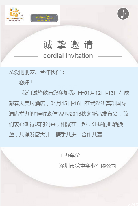 哇喔森堡童装衷心期待您的到来,2018秋冬新品发布会,我们与您相聚在一起,共创新辉煌!