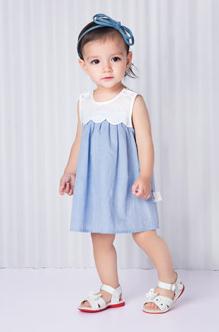 白色与蓝色可谓是两个最简单干净的颜色了,哇喔森堡童装的这条连衣裙便是采用了蓝白相间的颜色,干净的白色配上澄澈的浅蓝色,清新又纯粹,穿上这条裙子,孩子们仿佛就变成了那个意外坠入人间的天使。