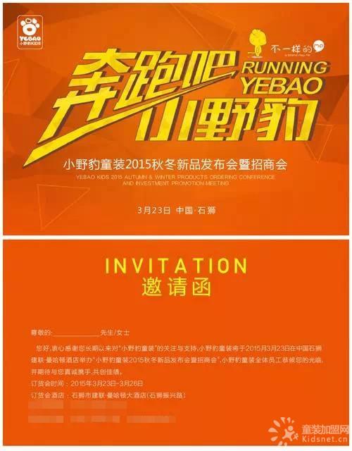 小野豹童装2015秋冬新品发布会暨招商会于3月23日隆重开幕,为期3天,欢迎加入并相互转告。
