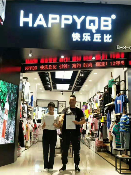 7月以来,快乐丘比捷报频传,15日贵阳地区再次迎来一位新成员!恭喜刘女士成功签约快乐丘比品牌童装,祝贺快乐丘比贵阳西南商贸城专卖店开业大吉,生意兴隆!