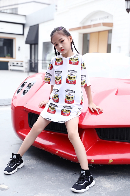 大多数女孩都喜欢斑驳的图案,而快乐丘比活灵活现地运用这种元素。白色卡通图案裙装,带给女童活力满满。搭配黑色运动鞋,彰显活泼以及天真气质。喜欢的小朋友,不如叫上家长来试穿哟。