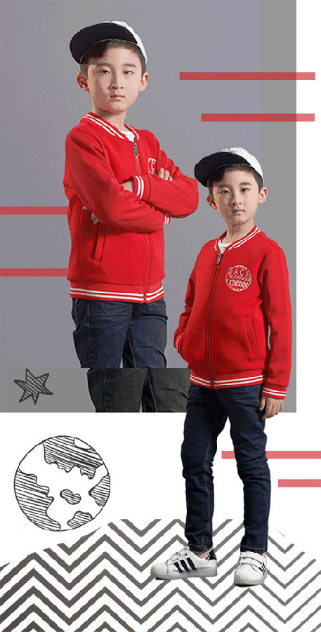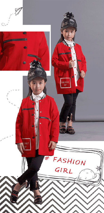 升级外套的level靠细节取胜,不对称纯黑拉链酷感十足,让大红基调的棒球外套飙升N个气质档次,非常适合时尚个性的宝贝。
