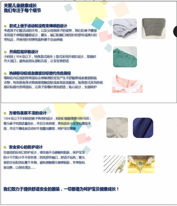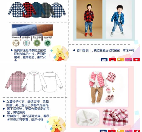 小熊维尼童装风格优雅,款式可爱。以活泼欢快的校园风格为主,伴以每一季紧跟童装风潮的时下流行设计。是适合优雅、乖孩子穿着的流行服装。产品主要凸显来自美国Disney的第二大品牌小熊维尼的图案形象,并以不同的表现手法体现在产品上。与此同时,产品以丰富的混合工艺大大彰显了服装的价值感和雅致感。