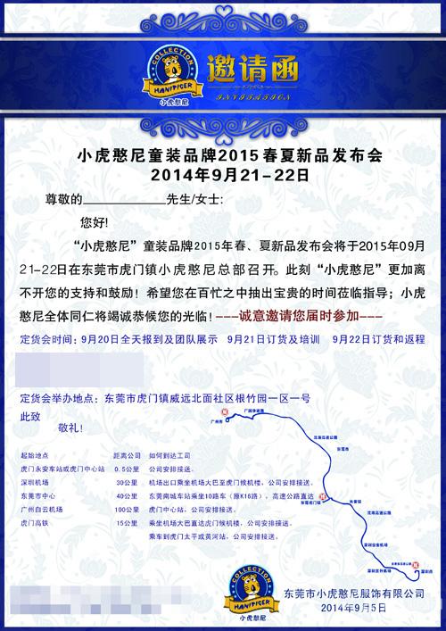 地点:东莞市虎门镇威远北面根竹园虎憨尼服饰有限公司总部
