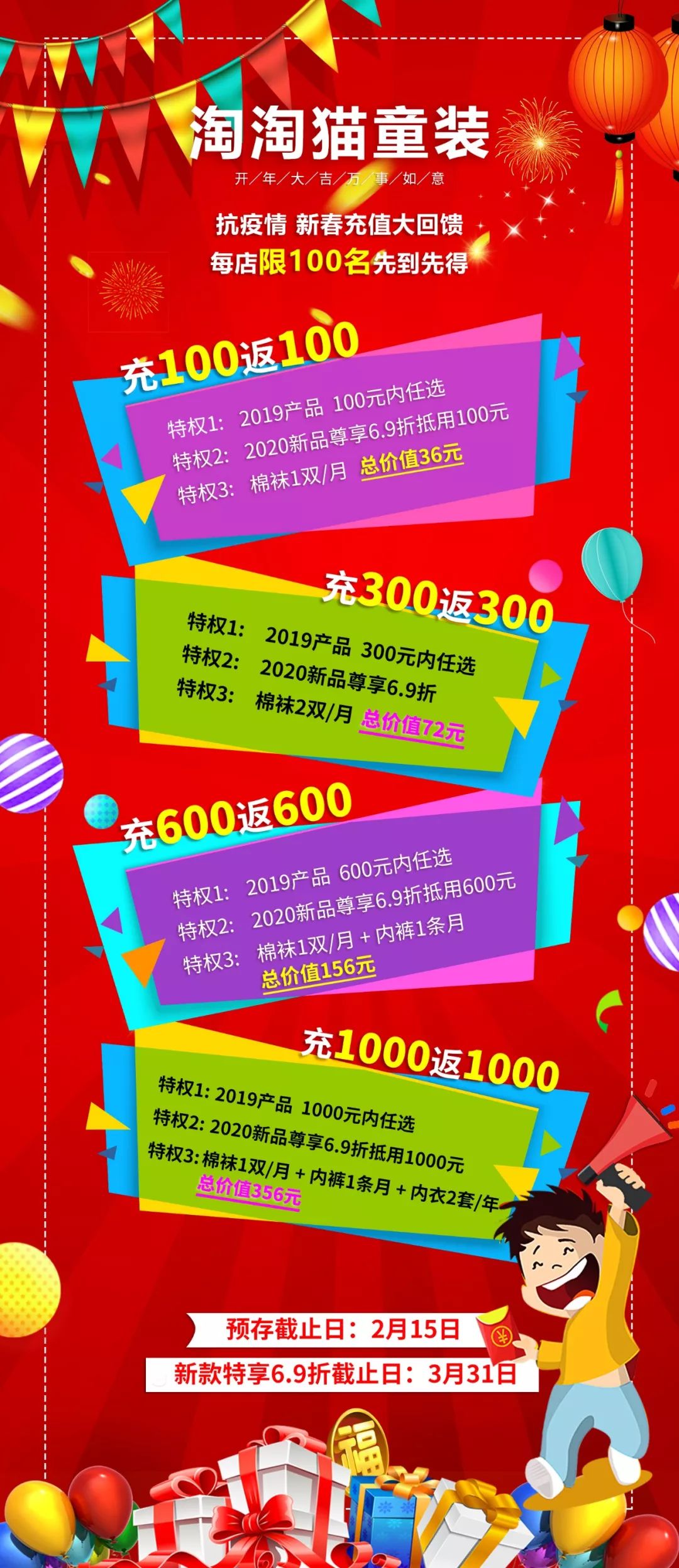 因为他们正在践行着我们“疫情虽在,服务不停!”的承诺,确保您在家里也能享受我们每一家实体门店能享受到的权益!让我们在线上为孩子们准备疫情过后出门踏春的衣服吧!下面是超值活动,心动就赶紧动手吧~