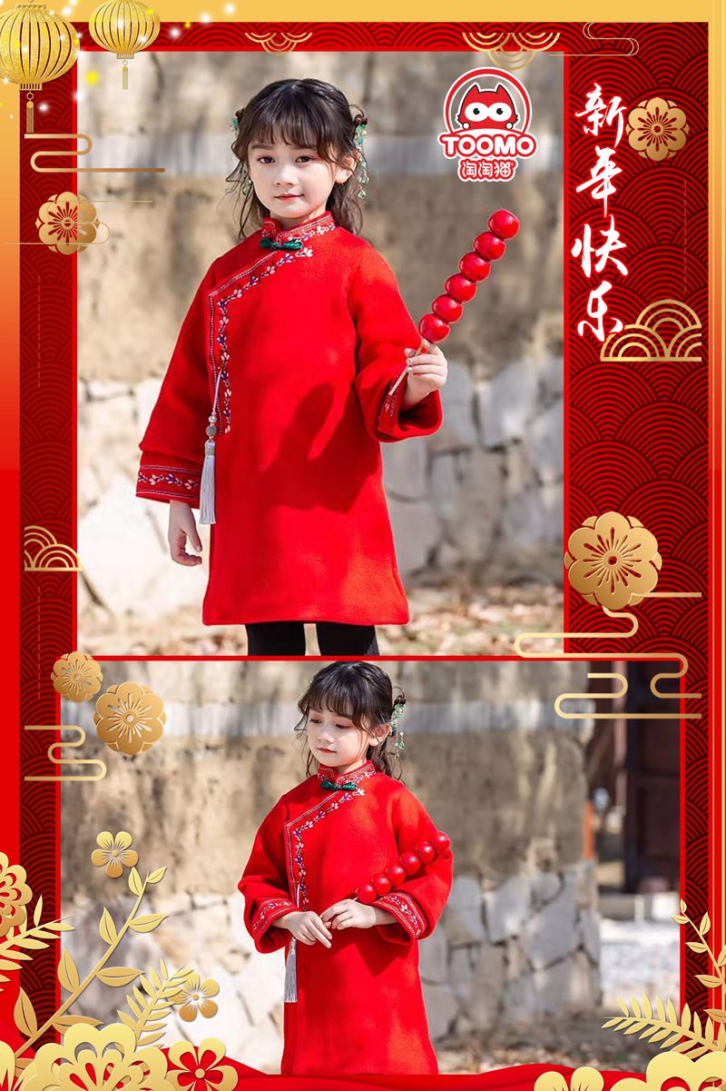 当旗袍遇到孩子的年服,孩子们穿着也有了美人初长成的感觉。
