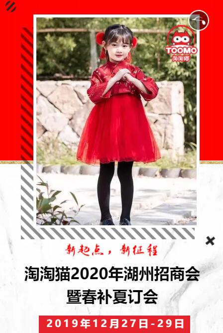相信在这次新品发布会上,实力品牌淘淘猫一定能再次带给我们亮眼表现。如果你也想加入到童装市场当中来,那么不妨给淘淘猫服饰一个被你了解的机会!再次诚邀各位伙伴及有志之士参与12月27号淘淘猫2020年湖州招商会暨春补夏订货会,我们不见不散!
