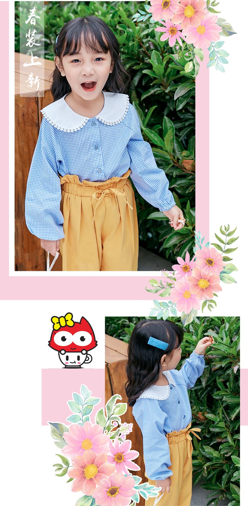 原本光是蓝色的小衬衫让人觉得可爱,