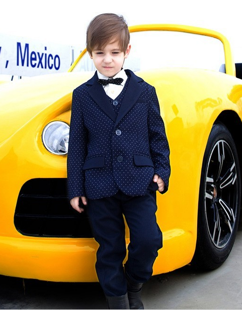 蓝蚁迪堡童装宝贝帅气穿搭,一套西装也可以非常的亮眼,深蓝色波点点缀的下身一条深蓝色西装裤,小孩子也可以穿西装,而且西装外套里面配上马甲也很不错哦,白色衬衫的搭配清新又帅气,配上领结小男生也可以成为小大人。