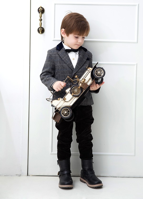 丝绒的裤子穿起来比较有质感,秋冬季节不仅仅只有衬衫要搭配,更多的是要搭配外套。秋冬季节外套肯定不会错过,外套一般可以起到了保暖的作用,一件保暖的羽绒服可以搭配,也可以是呢子外套。或是呢子西装外套,小男孩穿起来肯定非常帅气