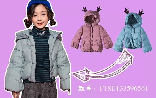 超萌系小鹿羽绒衣,蓝色和皮粉两个色系,帽子上可爱的小角给孩子梦幻的梦想。