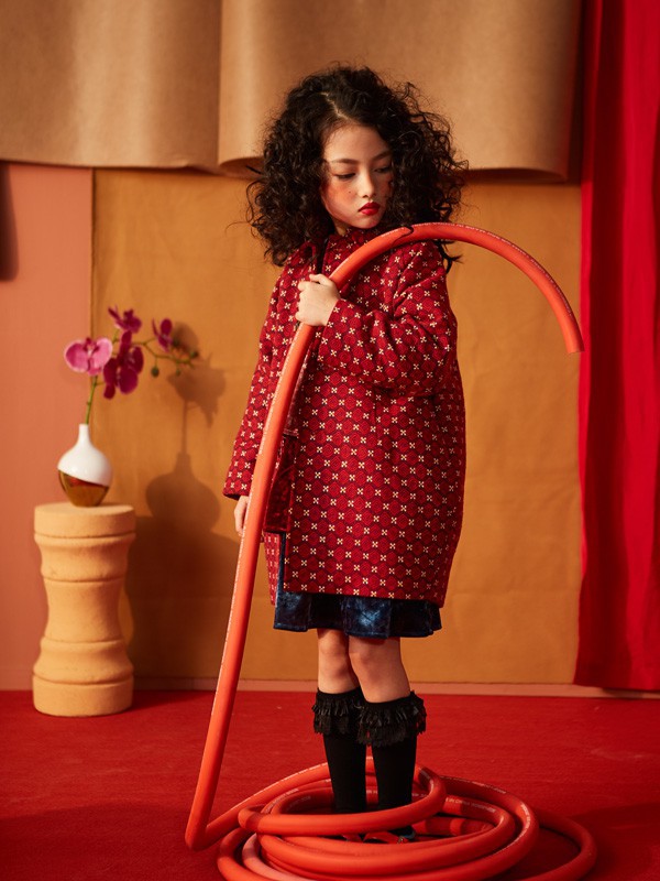 红色的颜色很是喜庆也很衬肤色,波点的设计很是复古时髦,中长款的版型穿在身上很是好看小小年纪就可以将自己打扮的漂漂亮亮,单排扣的设计很是好看,内搭一件连衣裙,将孩子的淑女气质穿出来,搭配一双高帮靴子,整体的造型你觉得怎么样,搭配波波头的发型整体的看起来是不是很时髦。
