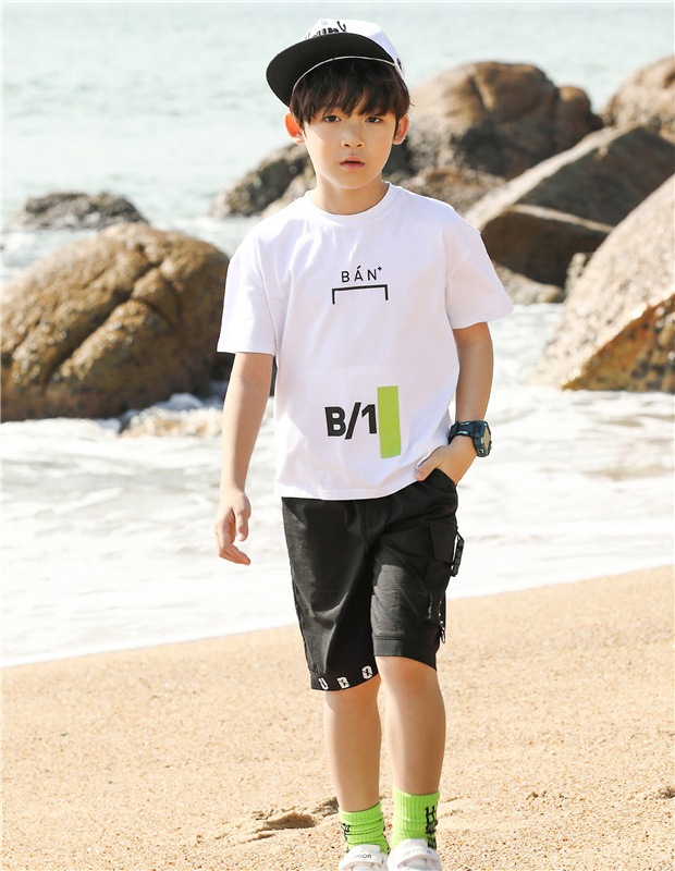 清爽的印花T恤,代表夏天的清凉气质,搭配一条深色扩版时尚休闲中裤,稳重中有活泼元素,看似简单的搭配,通过撞色对比,协调感唯美。这个夏天,不来班吉鹿童装怎么行!