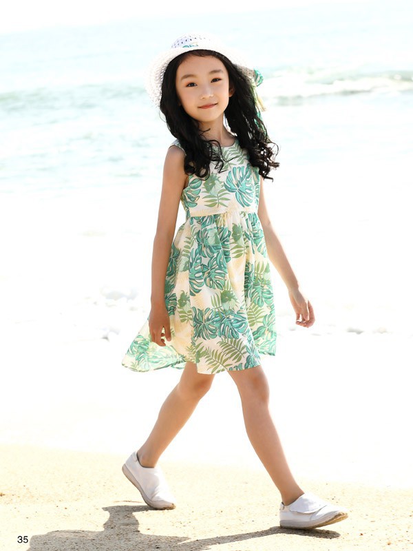 每一个季节都有着最具代表性的服饰,像冬天轻薄保暖的羽绒服,秋天英姿飒爽的风衣,春天温暖修身的针织衫,夏天当之无愧的莫过于连衣裙了,班吉鹿的这款白色连衣裙,加入了清爽自然的树叶印花图案,再在图案上加入绿色蓝色的色调,佩穿身上,可爱中带点仙气,活泼中带点优雅,特别适合小公主哦!