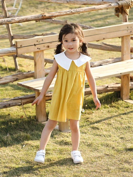 娃娃领的连衣裙,可爱甜美的气息,褶皱宽松的款式设计,别具一格,穿的舒适大方,吸晴的黄色系,看上更加有活力,清新的颜色,无袖的款式,清凉透气。
