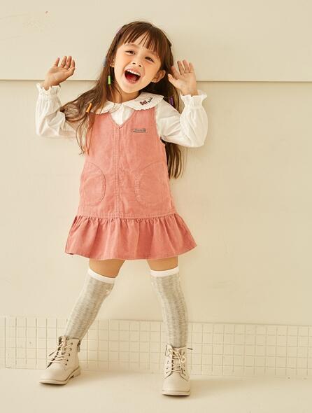 这款以公主风为主,公主风多以粉红、粉蓝、白色等粉色系列为主,衣料则选用纯棉布料,裙子剪裁采用荷叶边裙摆,衬衫有精美刺绣彰显细节,这一身装扮打造出洋娃娃般的可爱和天真烂漫。