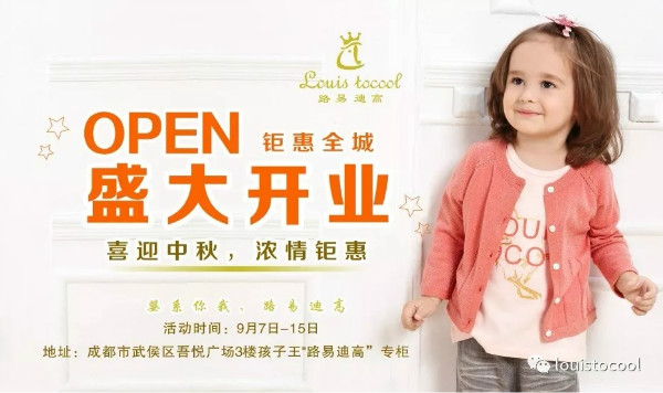 中秋将至,路易迪高童装成都新店开业好礼多多,期待您的到来!2019下半年,路易迪高品牌招商活动正在火热进行中!欢迎有加盟意向的朋友,咨询了解加入其中!