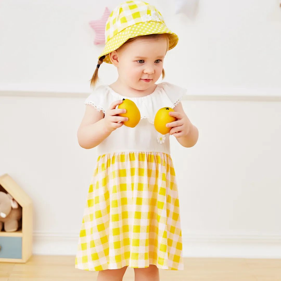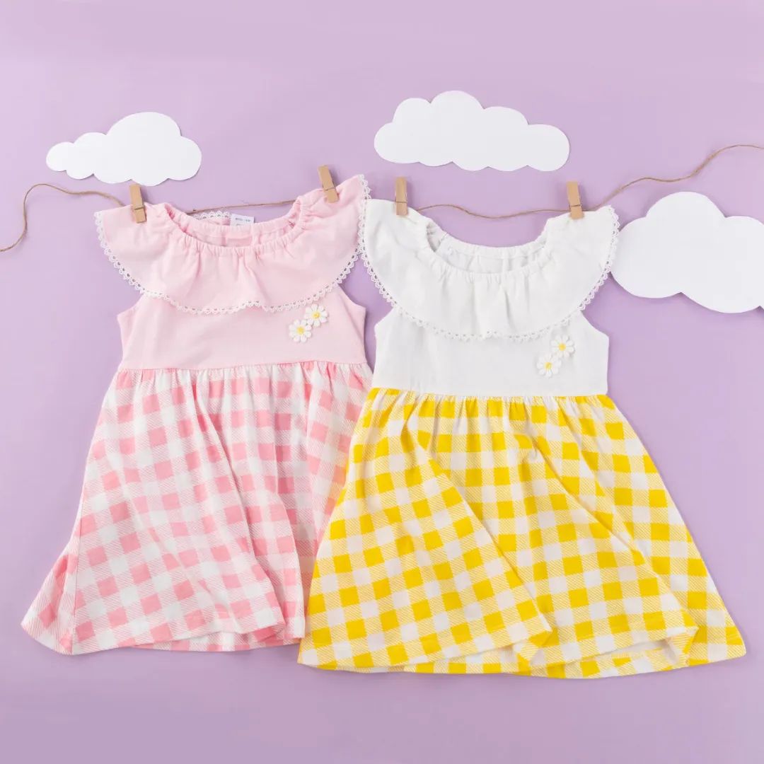 格纹拼接裙摆,清新甜美