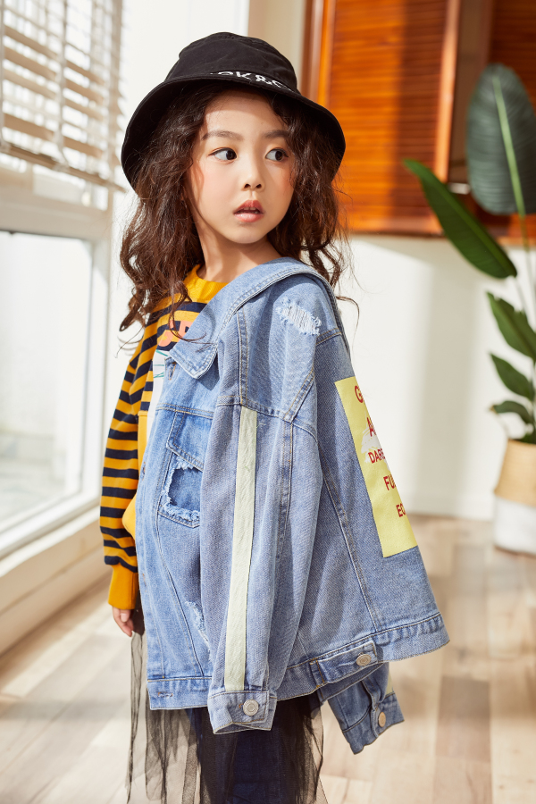 深蓝色和黄色的条纹上衣采用舒适的款式设计,让孩子穿起来犹如小蜜蜂一般活力可爱。在凉爽的秋季里给孩子搭配上一件牛仔外套就很不错,实用又好看。