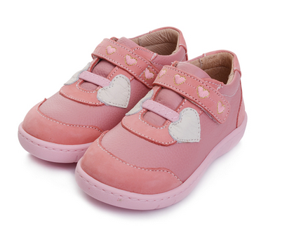 粉色系一直是小女孩的最爱,此款鞋子鞋面也采用头层牛皮,内里选用头层猪皮,粘扣设计,易于穿着;粉色、浅粉、白色拼接塑造,小小的爱心图形点缀其间,显得造型简洁却梦幻至极,最适合天真可爱的女宝宝了。