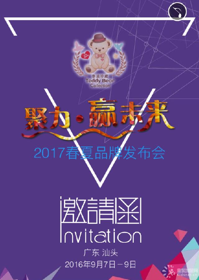 汕头市金麦源服饰有限公司诚挚邀请您参加泰迪熊2017订货会。届时,我们将向您呈现新品童装等泰迪熊系列产品。主品项和配搭品的结合、升级,将泰迪熊家族倾情演绎。