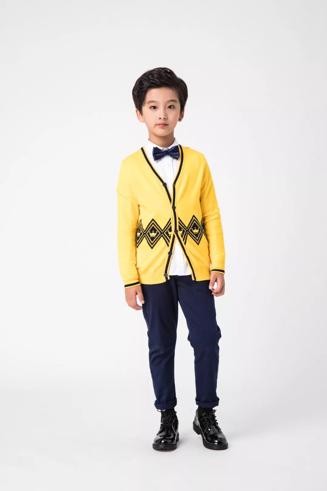 针织开衫搭配小皮鞋兼备复古时髦气质领结与裤子的色彩相呼应超有格调小皇冠和优秀的你很配喔~