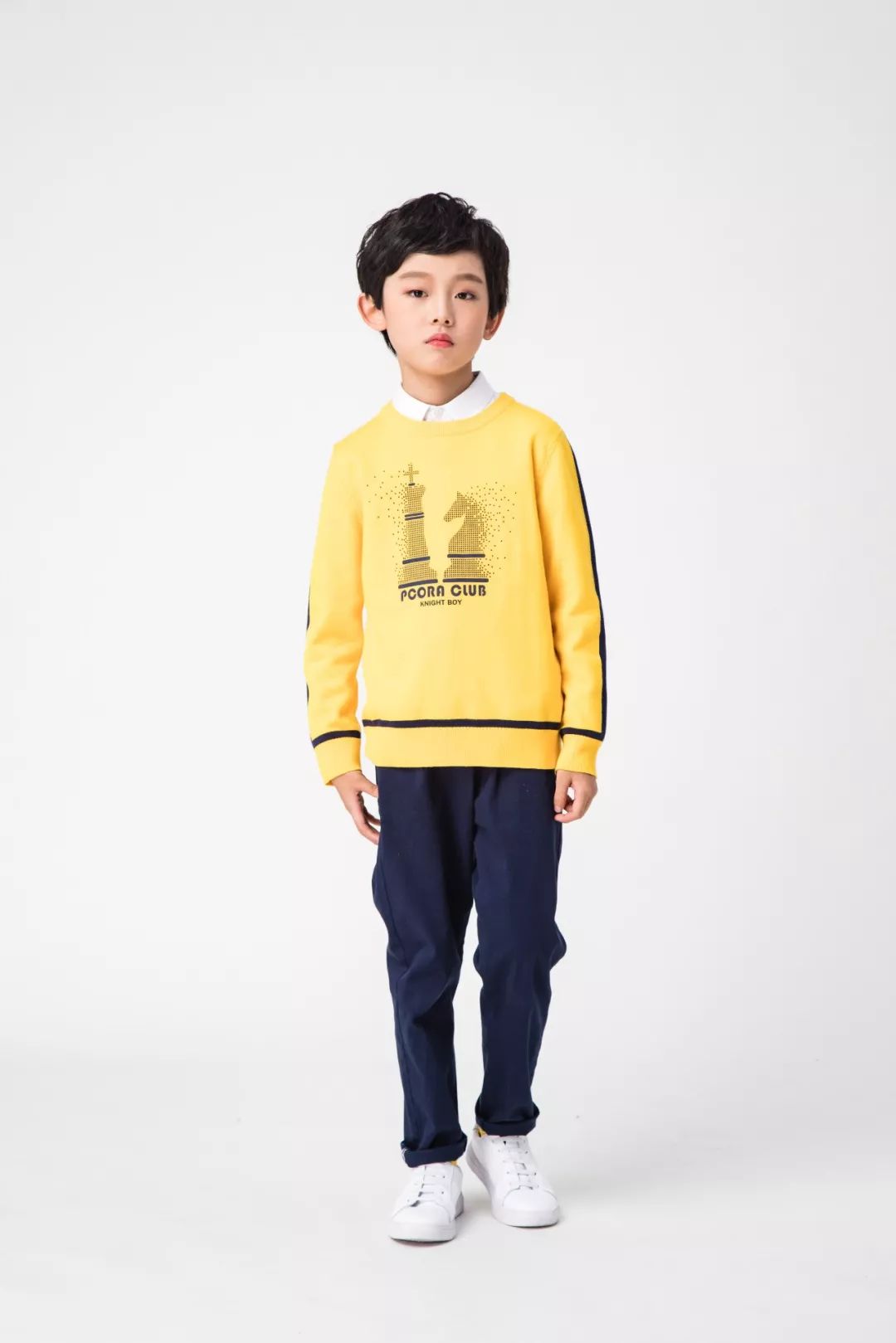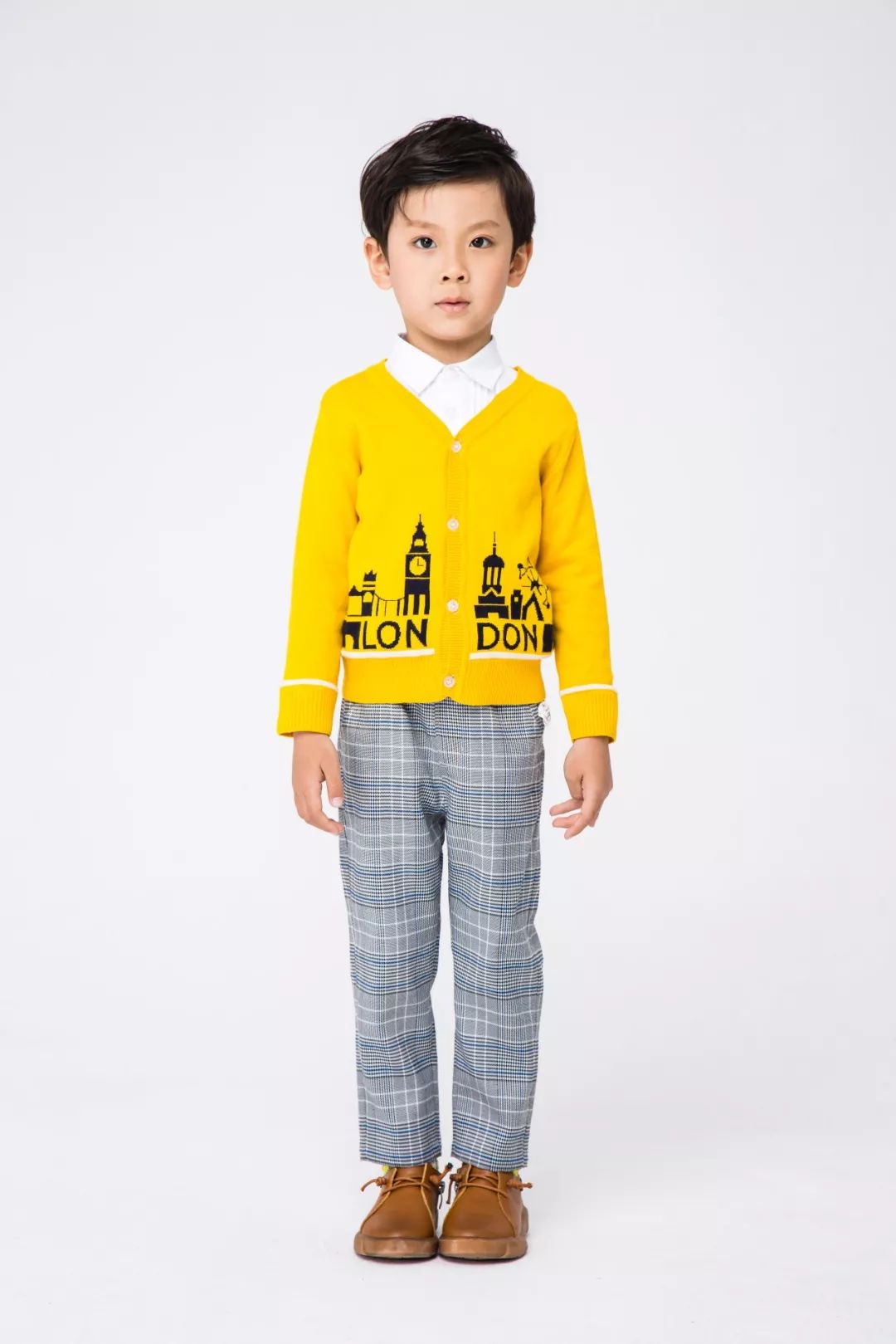 格纹西裤+棕榈皮鞋妥妥的小绅士一枚~针织衫上的大本钟、伦敦眼图案愈加显得活灵活现.