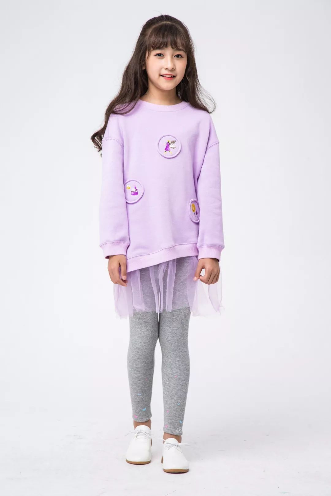 卫衣的纱裙下摆格外显眼搭配浅灰色的裤袜浅色系的look显得十分小清新~