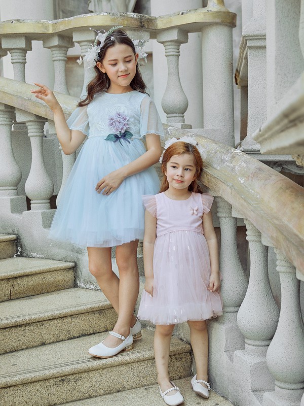 纱裙既梦幻又甜美,充满少女感的纱裙满足了小女生的公主梦。粉色和蓝色的连衣裙颜色超级清新,蓝色像是天空的颜色,干净自然,粉色是甜美的象征,这两条连衣裙作为姐妹装在合适不过了。