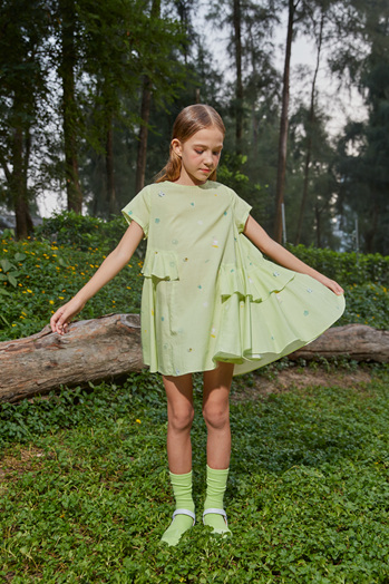 春熙美好,自然少不了可爱的小公主的靓丽身影,在繁花盛开的季节里,小公主们穿着象征着春天的牛油果色的连衣裙,宛如和春天一起,迈着轻盈的脚步,轻灵的歌声回响在蓝天白云间。
