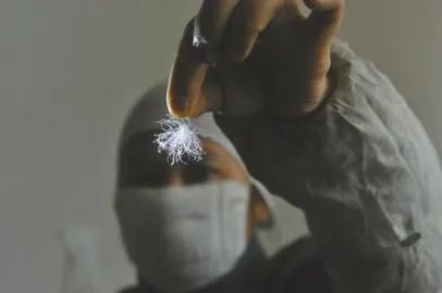 每一朵羽绒都是一个立体的球状纤维,在成千上万个鳞片中,饱含着大量静止的空气,形成了天然的屏障,使冷空气不能对流,并能够随着气温的变化而收缩膨胀,产生调温保暖的功效。