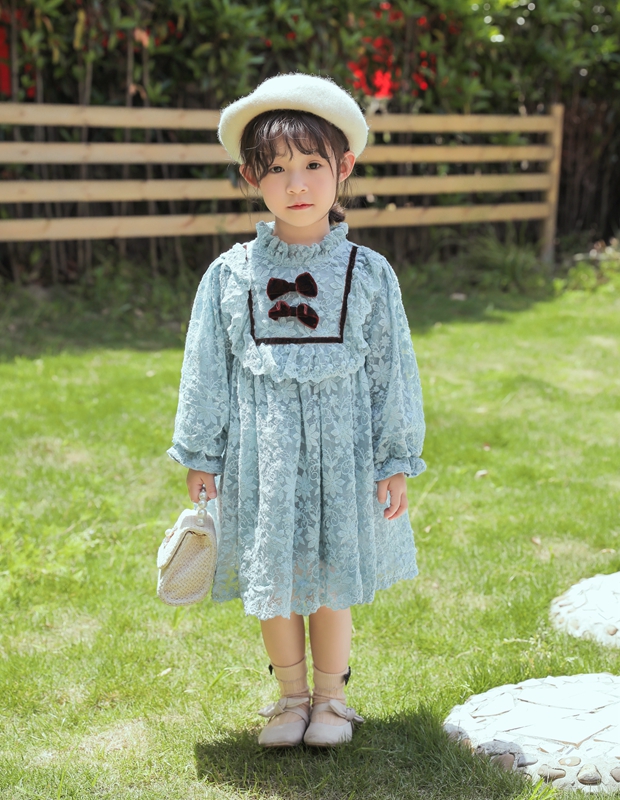 知性大气的青蓝色连衣裙,纱面贴花元素,装扮女孩休闲日常不显平庸,时尚又美感。可爱又优雅的蕾丝领设计,露出白皙娇嫩锁骨,突出时尚生活样貌。宽大袖口,荷叶花边呈现,装点女孩同盛开的鲜花,娇艳动人。微褶细节,隐藏无尽的美好,引人遐想。