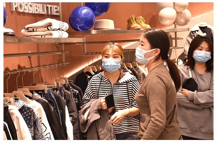 到店消费的朴粉们在店员推荐下给宝宝们试穿美衣