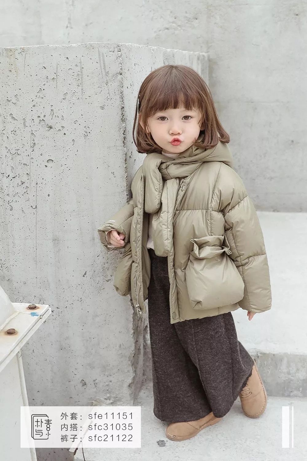 棕榈绿羽绒服+白色内搭+深灰阔腿裤