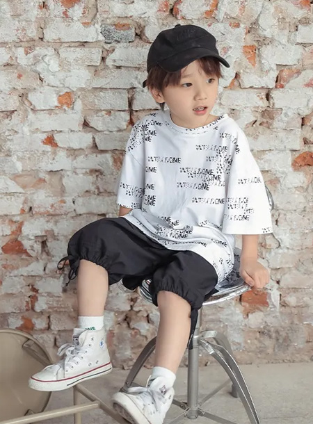 烧花字母宽松短袖,百搭又不失设计感,喜欢简约又不想过于单调的爸爸妈妈,可以考虑给孩子们入这样一件与众不同的白色T噢,下身再搭一件撞色短裤喝球鞋板鞋,清爽少年感,太帅气啦。