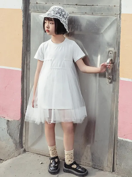 白色网纱连衣裙,多层网纱仙气飘逸,夏日里又酷又可爱的小漂亮非你莫属,再搭一双小皮鞋或者白球鞋,走出去的回头率爆表!