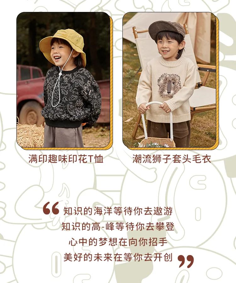 “PU&SU”是新生代潮童生活方式的塑造者,品牌将简约时尚的穿搭融入多元化的童年生活场景, 重启儿童对自然的感知力、生活的创造力,展现新生代潮童健康、自信的魅力形象。