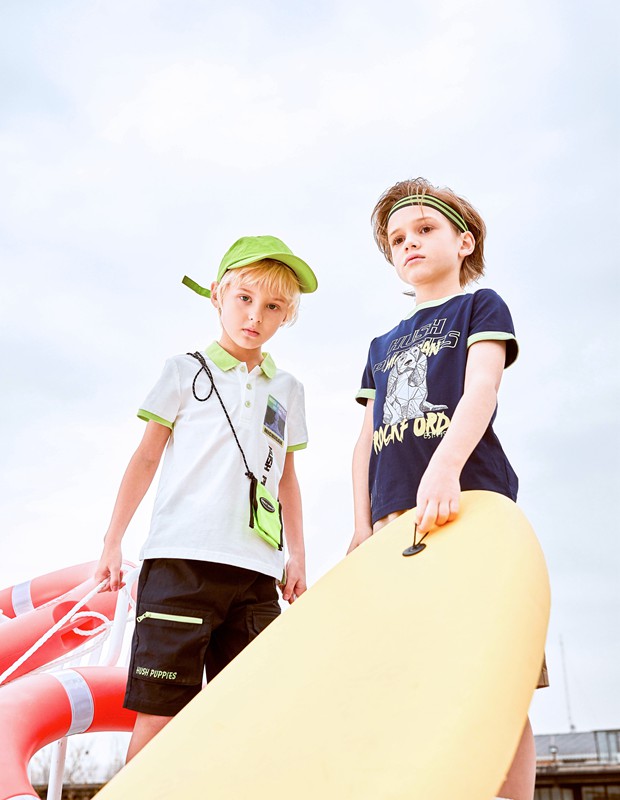 暇步士童装得产品色彩上,大体遵循暇步士校园休闲系列、日常休闲系列的清晰定位。校园休闲系列以卡其、军绿、藏蓝、复古桔、玫红、亮绿色为主;日常休闲系列以浅色卡其、军绿、灰色、牛津为主。在较好体现暇步士“舒适”+“休闲”DNA的基础上,增加了体现儿童活泼、纯真的色系,形成了特色鲜明的暇步士童装风格。