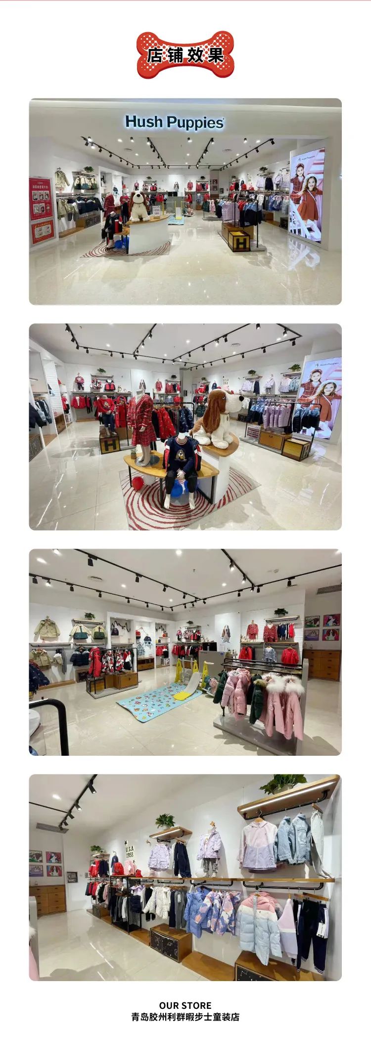 店铺地址:山东省胶州市三里河街道澳门路利群广场二期三楼童装区