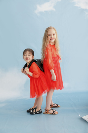 公主裙可不止有白色,红色的视觉也不错哦。对于肤色白皙的宝宝来说,红色的色系更是倒映出粉嫩的可爱的脸庞呢!没有蕾丝不成裙,安米莉童装采用了柔软细节的蕾丝,非常亲肤,宝宝穿着很舒适!