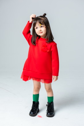 优雅且红火的穿搭,满身都充满过节的气息,照亮了黑夜, 更是在低沉的服饰中,开出一朵朵浪花,精致而又迷人。下摆蕾丝的设计,增添整体的亮点,若是再寒冷一点的天气,还可以别上一条围巾,让造型更加出众,十分可爱。