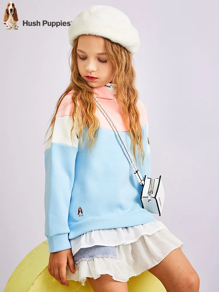 甜拽风复古感粉蓝撞色卫衣