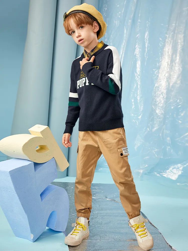 精致线衣+工装裤+帆布鞋扑面而来的小大人风范个更随心的撞色拼接穿出自我和酷劲内里叠穿质感格子衬衣更显层次感