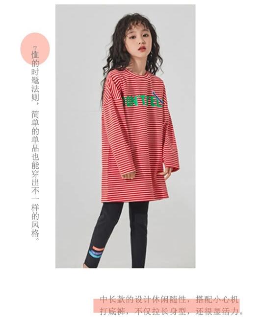 拼接风格的T恤,绿色很衬皮肤,袖子的撞色也会显得更加的时尚。搭配简约条纹裙,营造出别致的视觉审美风格。